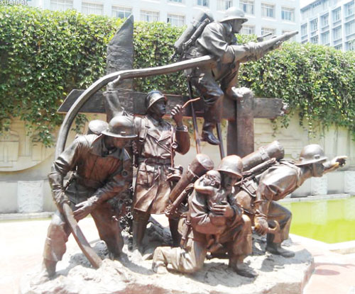 我們的銅雕是反映什么時(shí)期的,古代的一般適合青銅色近代的一般適用于古銅色,現(xiàn)代就很多了,鑄銅人物雕塑,有貼金的,也有鍍金的,還有彩繪的。